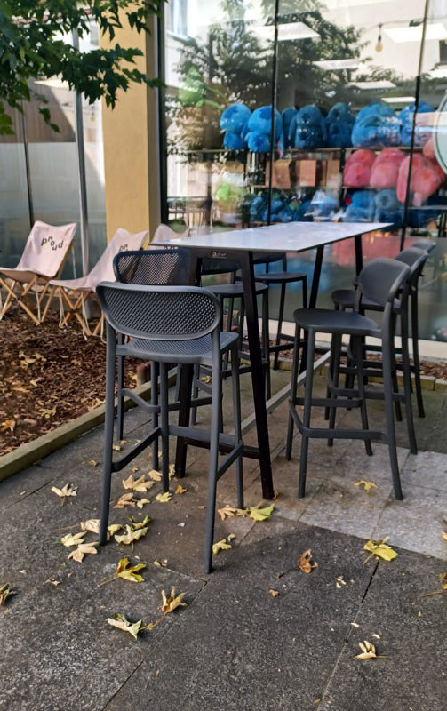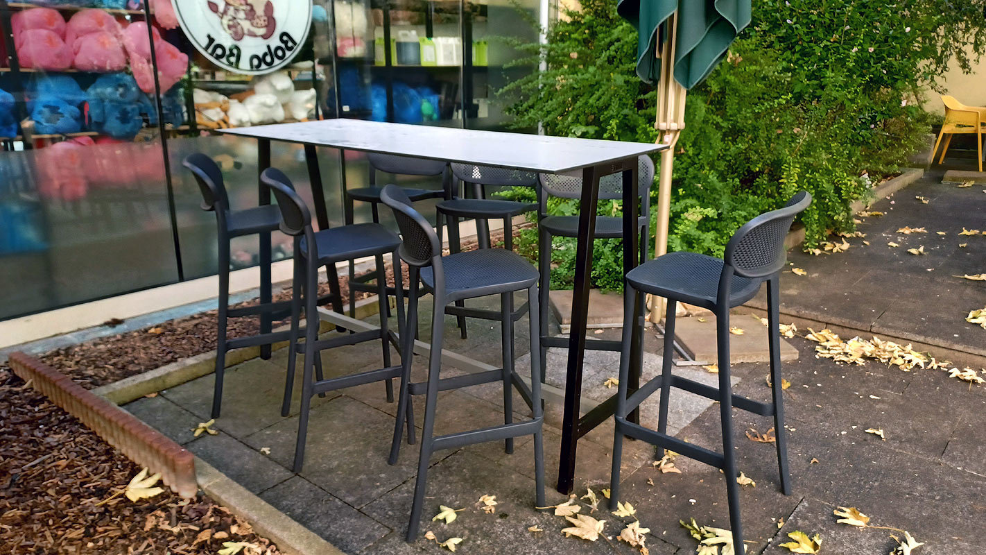 Barové židle NUTA jsou stohovatelné (max. 6 ks).