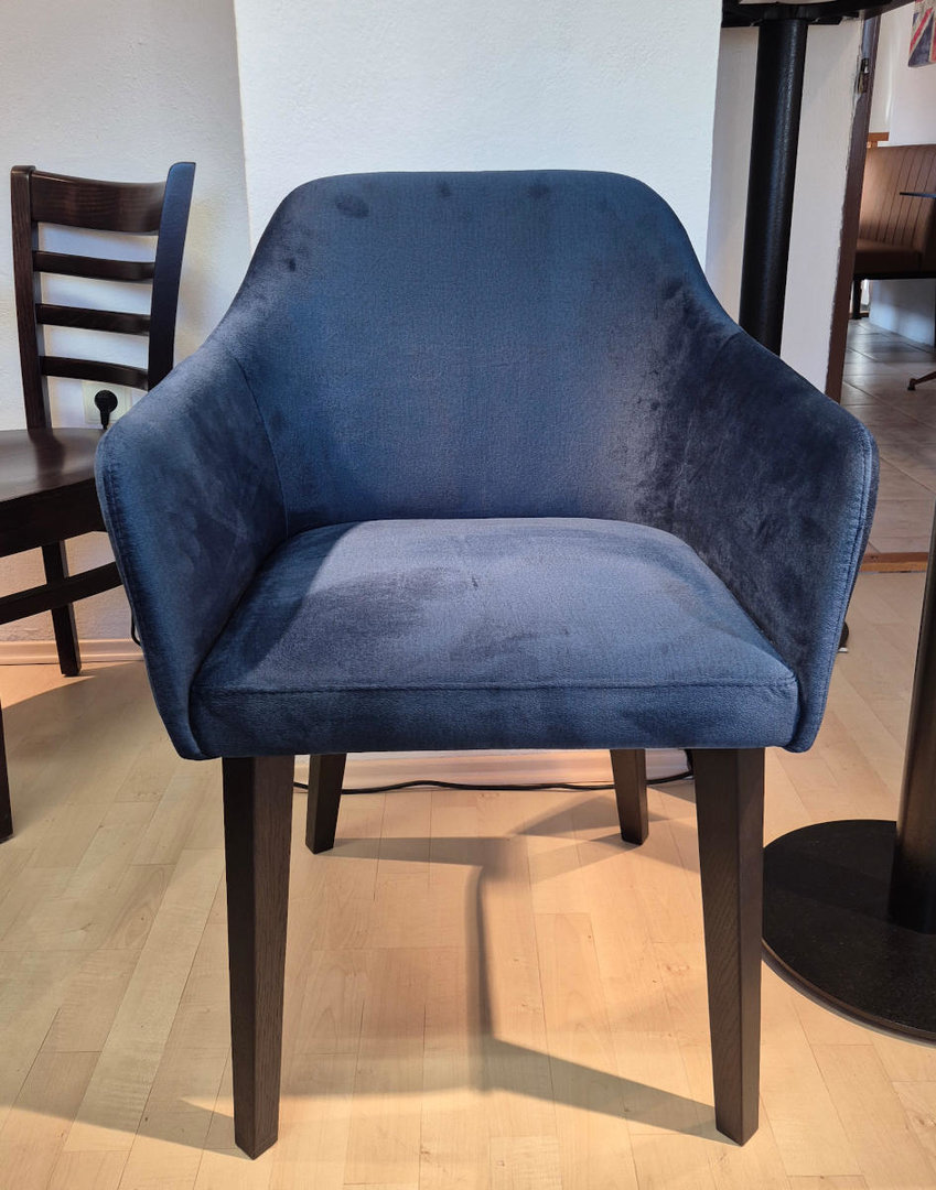 K dispozici je velký výběr potahových látek viz. vzorníky. Hranaté nohy jsou z masivního bukového dřeva, mořeného do několika odstínů.