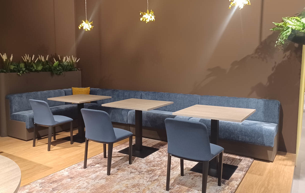 V segmentu nábytku pro veřejné prostory letos v Miláně rezonoval posun od "industriálního chladu" k pohostinnosti, která připomíná domov. Restaurace se stále více stylizují do podoby obývacích pokojů, aby podpořily delší setrvání hostů.