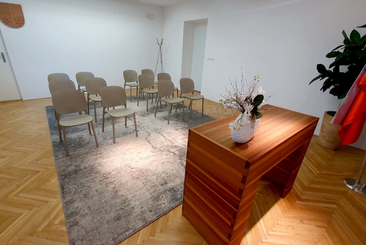 V nové obřadní síni v Líbeznici jsou použity moderní vzdušné židle HUG Go Green. Tyto židle jsou kromě svého designu zajímavé tím, že jsou vyrobeny z certifikovaného recyklovaného technopolymeru PCR, získaného z výrobního odpadu díky využití energie z obnovitelných zdrojů. Židle HUG získaly zvláštní ocenění "Udržitelnosti" v rámci Archiproducts Design Awards 2022.
