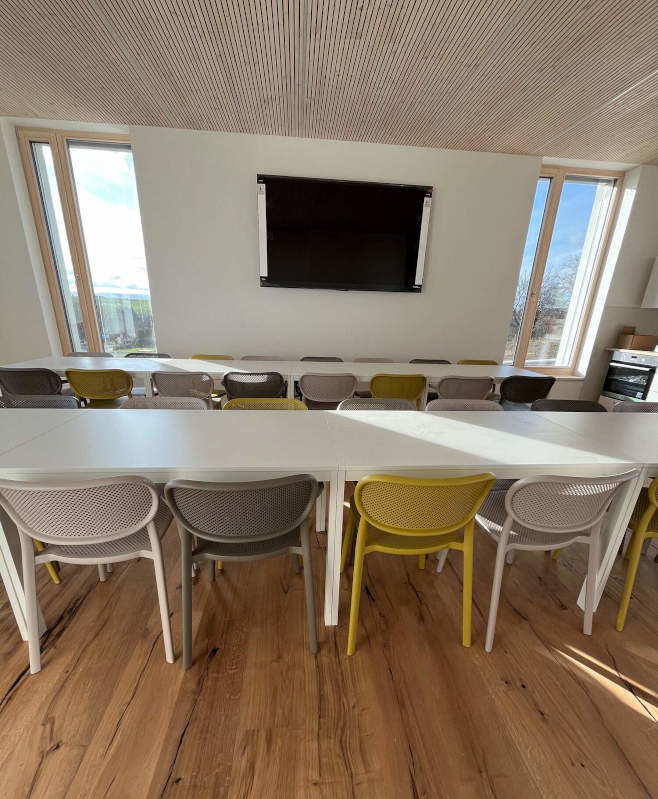 Letos v lednu byla slavnostně otevřena a požehnána vila Skřivánek - prostor, který nabízí důstojné zázemí pro zaměstnance i klienty Charitní pečovatelské služby Farní charity Litomyšl. Univerzální stoly CLARO v rozměru 70x70cm a židle NUTA v různých barvách oživují prostor.