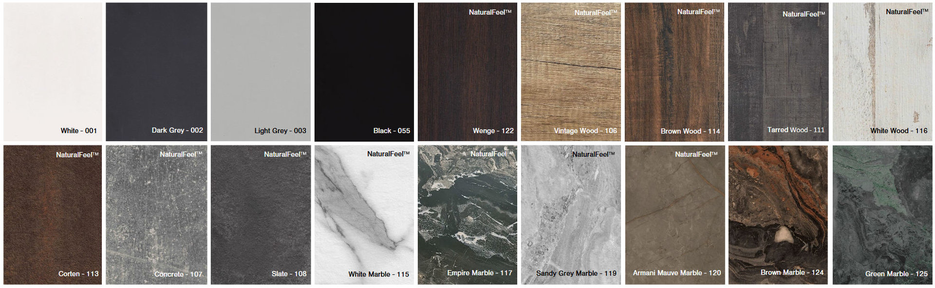 Stolové desky StableTable Compact HPL nabízíme v široké škále dekorů a barev, které si můžete prohlédnout ve vzorníku níže nebo přímo v naší vzorkovně.