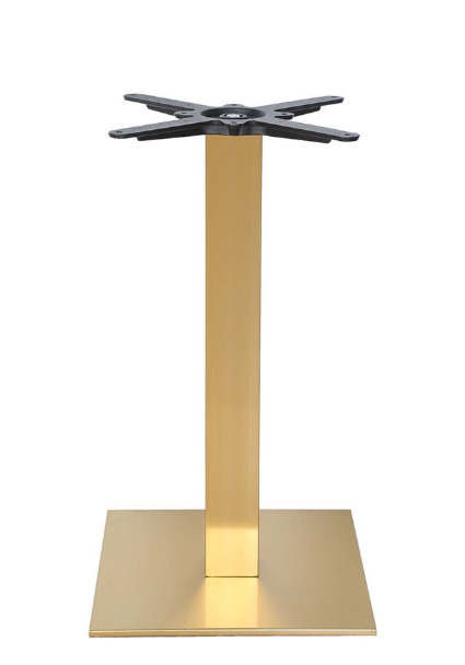 Zlatá stolová podnož DAYTON dodá vašemu interiéru nevšední moderní vzhled. Litinový montážní kříž umožňuje pevné uchycení stolové desky. Podstavec je čtvercový 40x40cm a tvoří ho litinová základna překrytá zlatým plechem. Sloupek je ocelový hranatý 8x8 cm.