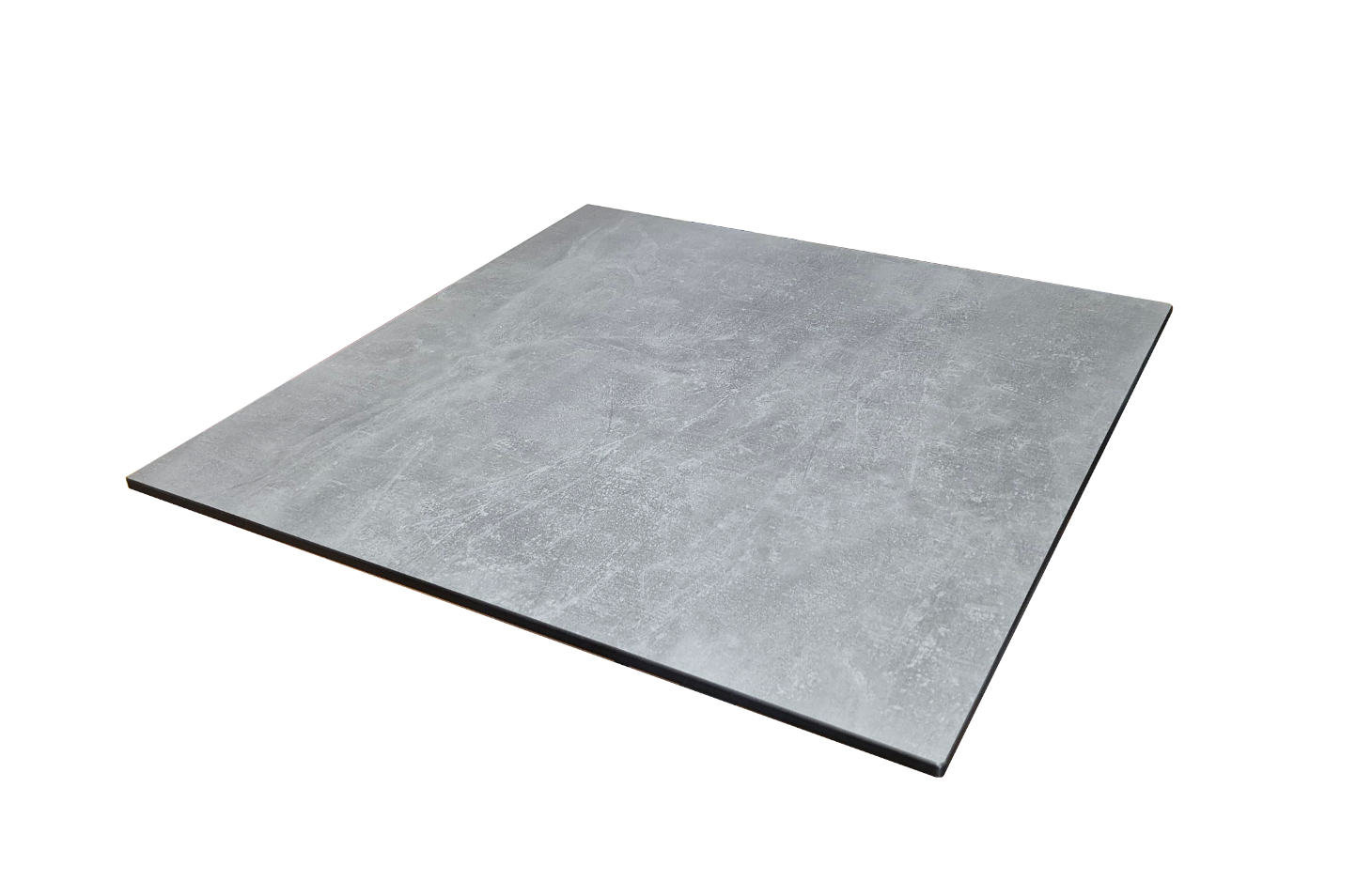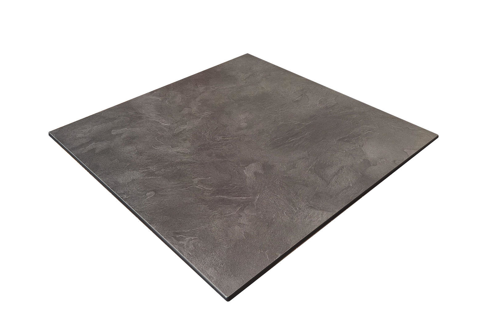 Moderní kavárenský a restaurační stůl PRATO 16 QC COMPACT 12 má pevnou kovovou podnož černé barvy a odolnou tenkou stolovou desku COMPACTLINE 12mm. Deska je dostupná v rozměrech 60x60 cm - dekor Industrial 0240 a 70x70 cm - dekor Dark Slate 0231.