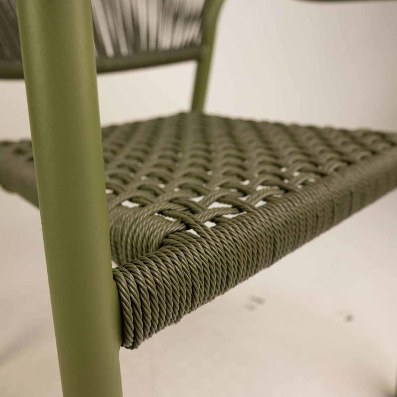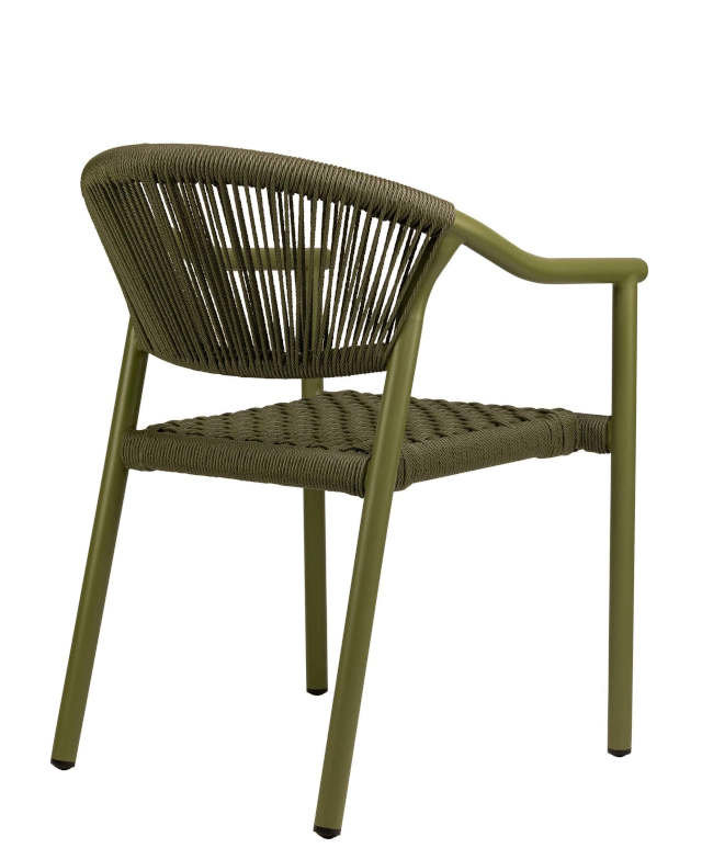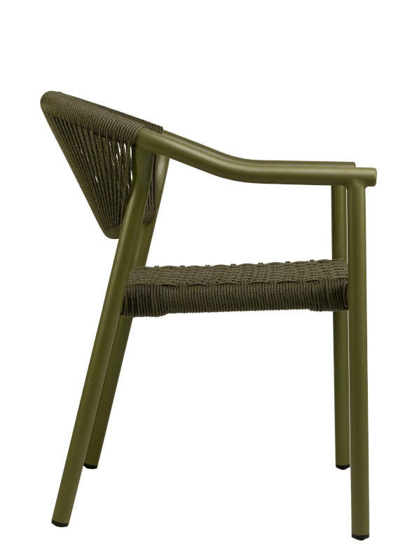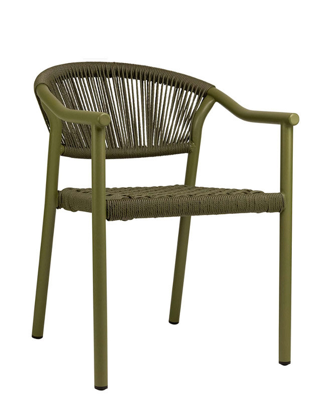 Kvalitní hliníkové křeslo JAXON s područkami je určené pro restaurace a kavárny. Kostra křesla je ošetřena práškovou barvou a je spolu s výpletem laděna do olivově zelené barvy. Výhodou je nízká váha a tudíž snadné uklízení z terasy.