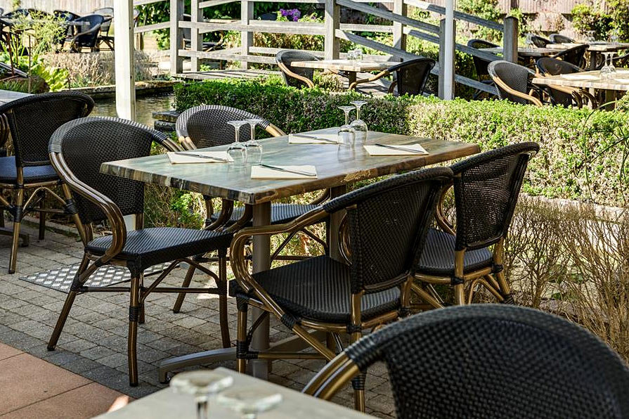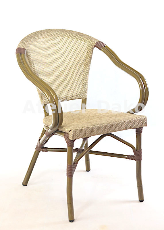 Klasické venkovní křeslo z pařížských kaváren v modernějším provedení. Křeslo Montmartre má pevnou svařovanou hliníkovou konstrukci s trubkami o průměru 28mm a síle 1,5mm. Povrchová úprava konstrukce je v provedení Bamboo look (imitující ratan). Výplet je odolný umělý materiál Textylen 8x8 v přírodní žíhané barvě.