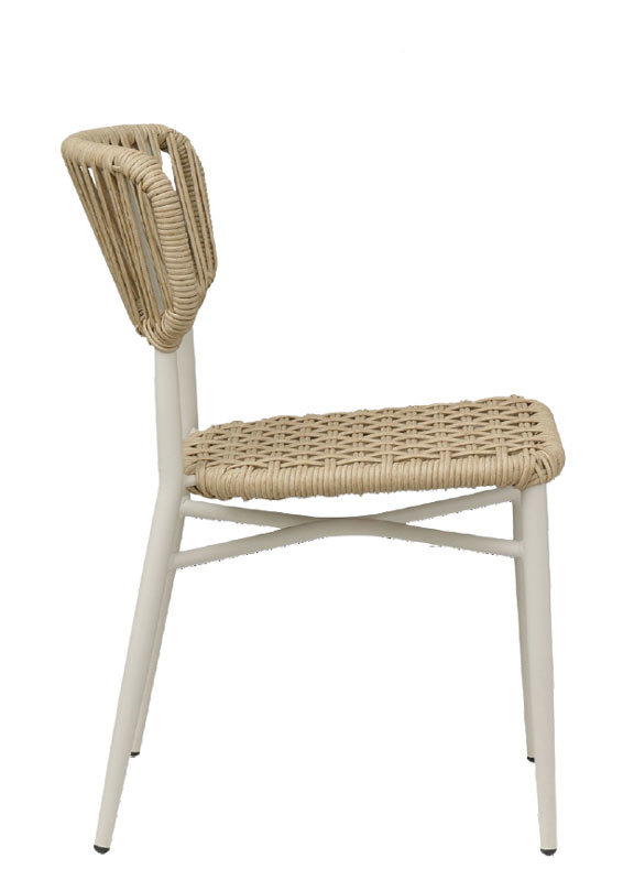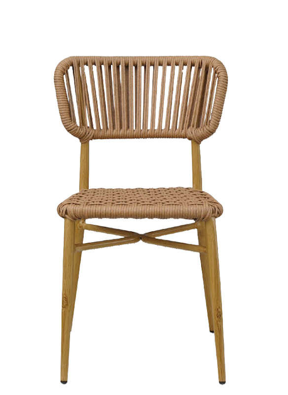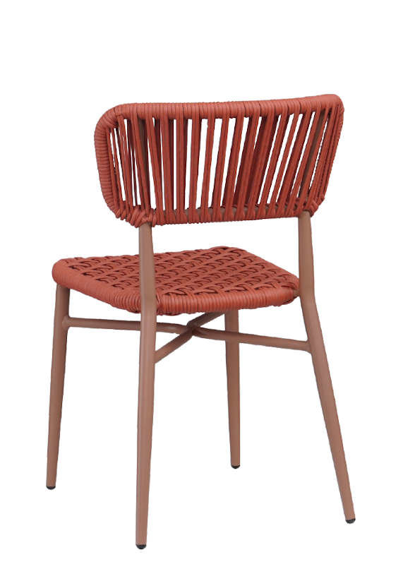 Kvalitní hliníková židle určená zejména pro terasy restaurací a kaváren. Kostra židle je hliníková v práškové barvě. Provazový výplet je odolný PE materiál. Výhodou je nízká váha a tudíž snadné uklízení z terasy.