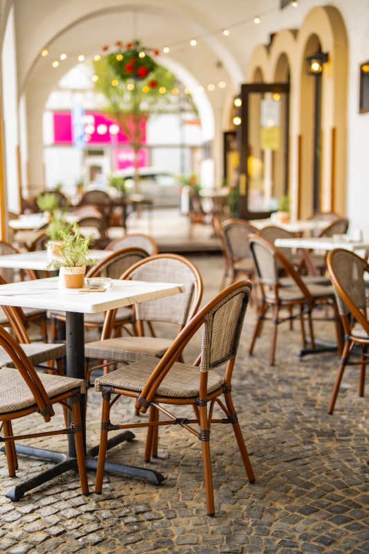 Klasická židle z pařížských kaváren v modernějším provedení. Židle Reims má pevnou svařovanou hliníkovou konstrukci s trubkami o průměru 28mm a síle 1,5mm. Povrchová úprava konstrukce je v provedení Bamboo look (imitující ratan). Výplet je odolný umělý materiál Textylen 8x8 v žíhané šedo-béžové barvě.