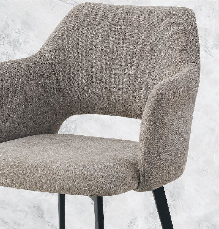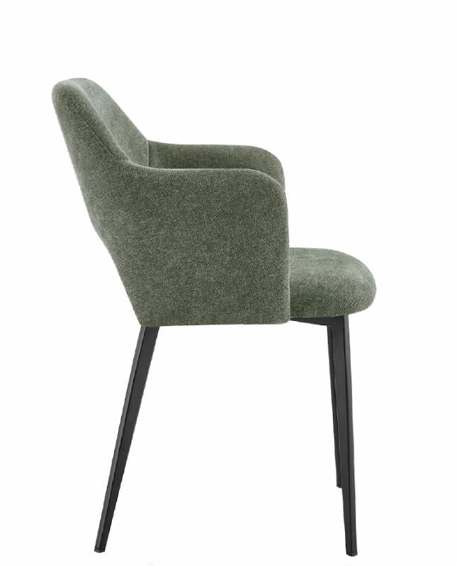 Moderní židle s područkami FRANCIS má pevnou kostru černé barvy z ocelových profilů 30x15mm (tloušťka stěny 1,5mm). Přestože sedák i opěradlo jsou čalouněné, působí židle vzdušně a lehce. Materiál čalounění je látka Storm, vyrobená ze 100% polyesteru.