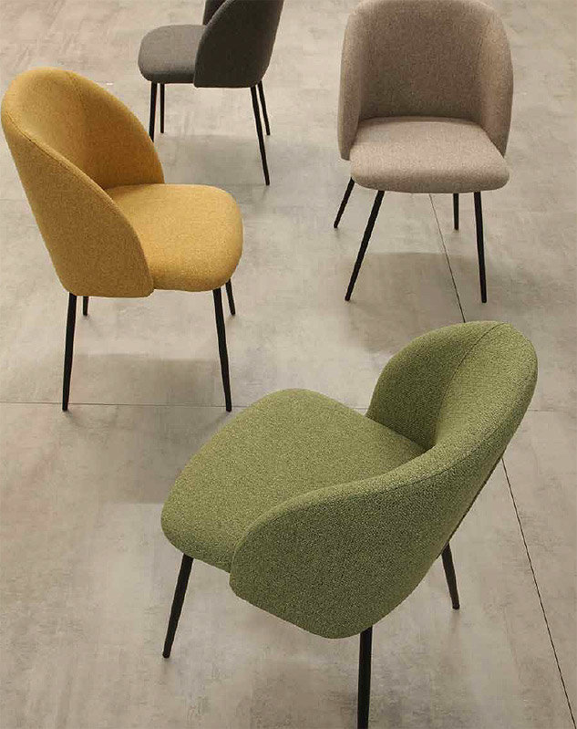Moderní pohodlná židle s područkami PIGALLE má pevnou kostru černé barvy z ocelových trubek o průměru 19mm. Přestože sedák i opěradlo jsou čalouněné, působí židle vzdušně a lehce. Materiál čalounění je kvalitní látka "New Life" vyrobená z recyklovaných PET lahví ve 4 různých barvách.