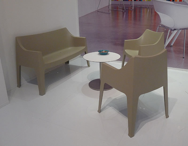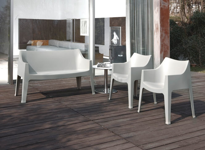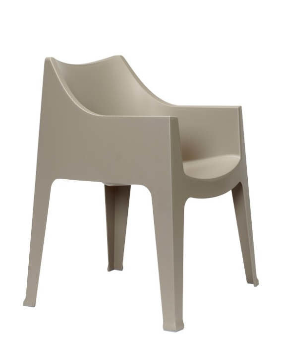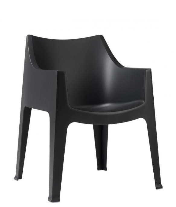 Moderní velmi stabilní stohovatelné křeslo COCCOLONA se dobře hodí pro venkovní i interiérové použití. Vyrábí se z recyklovatelného technopolymeru v různých barvách viz. vzorník dole. Křeslo je zespodu opatřeno protiskluzovými podložkami, takže je možné použít bez problémů na různé typy podlah.