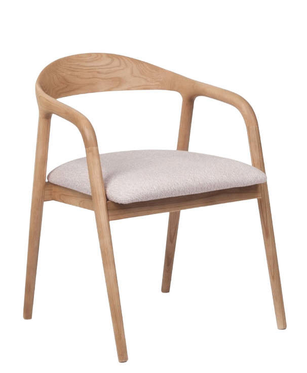 Moderní židle s područkami KOBE je vyrobená z kvalitného jasanového dřeva přírodní nebo tmavě hnědé barvy. Sedák je čalouněný rúznými látkami dle výběru.