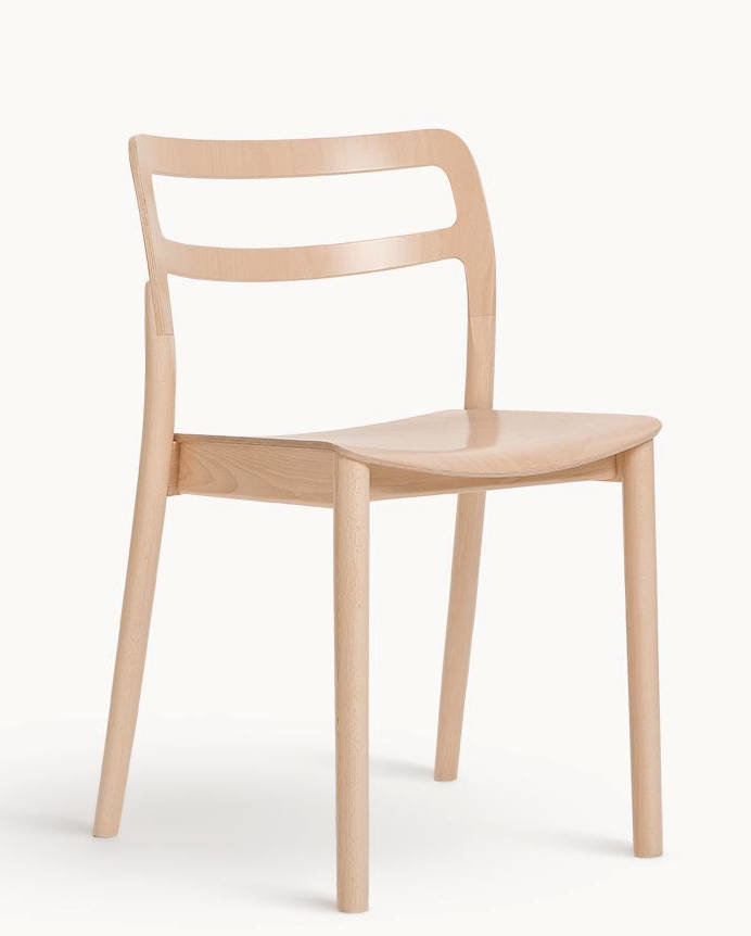 Moderní designová židle Plasa má pevnou konstrukci z masivního buku. Sedák je vyroben z dřevěné překližky. Také barvu židle je možné vybrat ze vzorníku.
